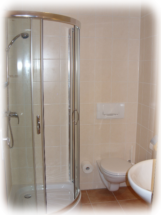 Zur Ausstattung jedes Apartments gehören ein Badezimmer mit WC, Dusche und Waschtisch.