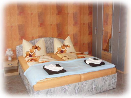 Im Wohn- und Schlafraum befinden sich ein Doppelbett, mit Kleiderschrank, einer gemütlichen Sitzecke mit bequemen Cocktailsesseln, sowie