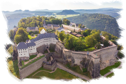 Vierhundert Jahre Festungsbaukunst präsentiert die Festung Königstein in der Sächsischen Schweiz. Auf dem 13 Fußballfelder großen Felsplateau des Tafelberges wird das Alltagsleben in einer Festung erlebbar. Mehr als 50 Bauwerke und weite Grünanlagen laden zum Erkunden ein. Mehr als 750 Jahre Geschichte haben die Wehranlage zu einem eindrucksvollen Monument von Bauwerken der Spätgotik, der Renaissance, des Barock und des 19. Jahrhunderts werden lassen.