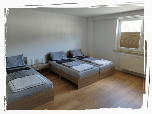Ein Schlafraum mit 4 Einzelbetten, Kleiderschrank, sowie Sat-TV ,Radio und Wlan.